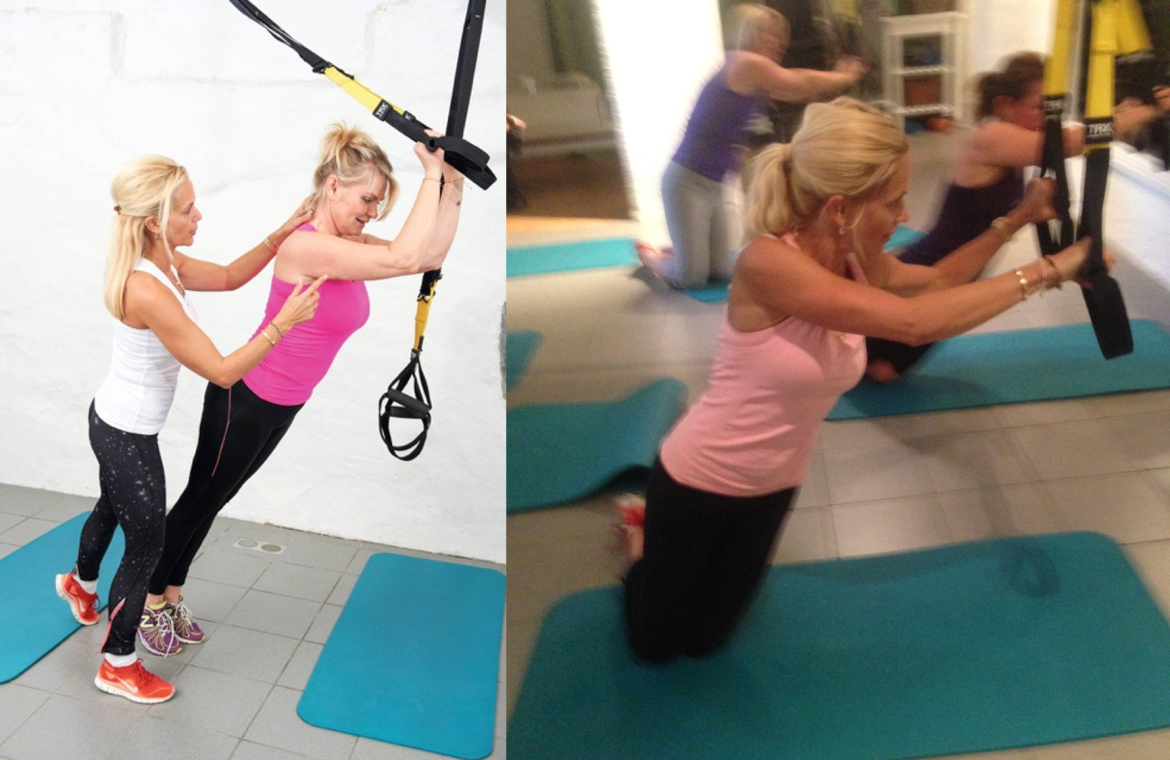 For et par år siden sertifiserte jeg meg TRX – teknikken i London. Det er noe av det tøffeste jeg har gjort. Og aldri har jeg vært så støl. Denne form for slyngetrening er morsom og krevende og pulsen stiger veldig høyt. Jeg og mitt team har valgt å kalle klassene våre for trx core. Det er fordi vår styrke er å jobbe utifra core. Slik kombinerer vi dyp styrke fra pilates med TRX teknikken. Klassene egner seg supergodt fra alle, både menn og kvinner. Men å gjøre dette hjemme krever at du har din egen slynge.